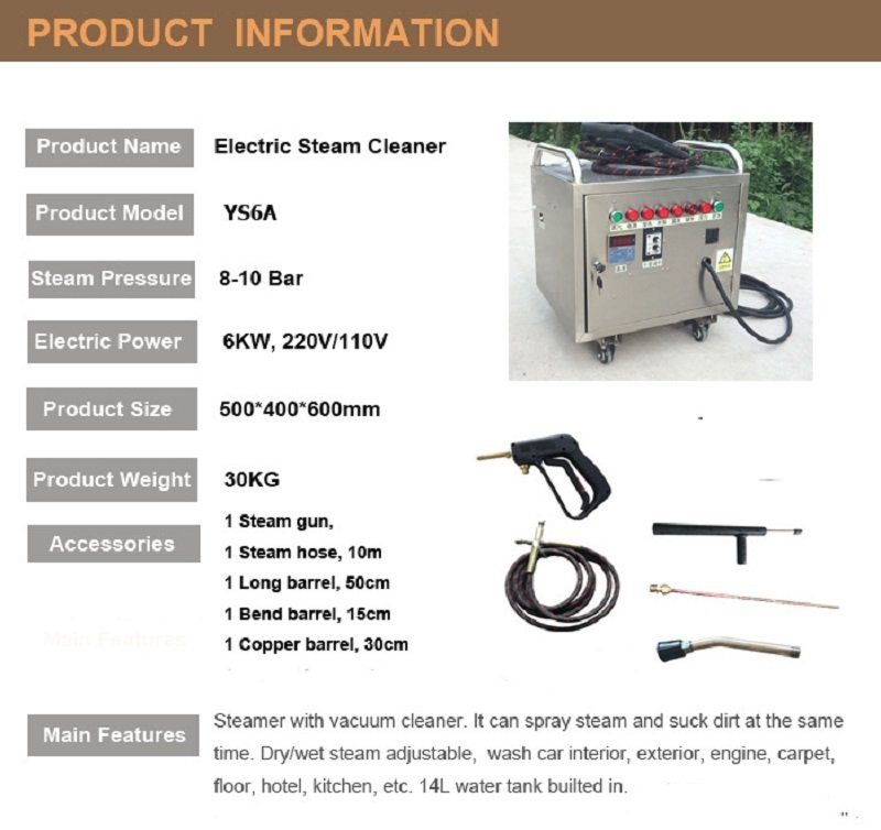 Modèle de produit YS6A Pression de vapeur 8-10 bars Puissance électrique 6 kW, 220 V/110 V
