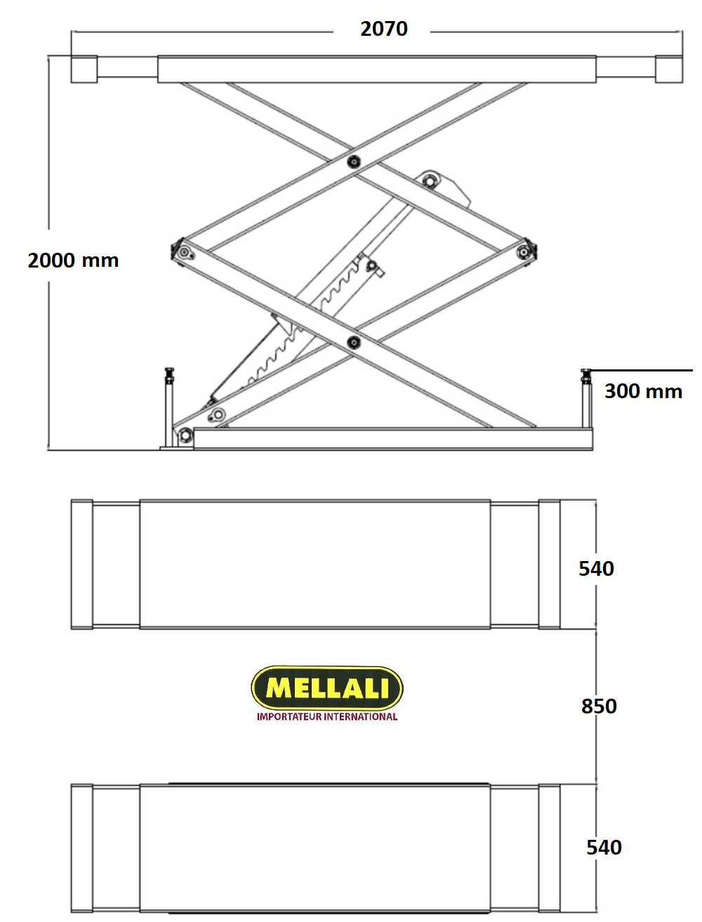 - Pont ciseaux encastrable sur- dimensionné avec une capacité de charge de 3.5 Ton Ses plateformes réglables sont idéales pour les véhicules légers, 4×4 et fourgons.